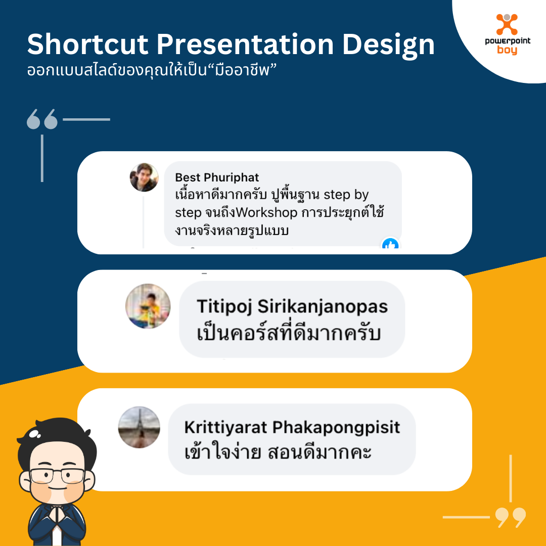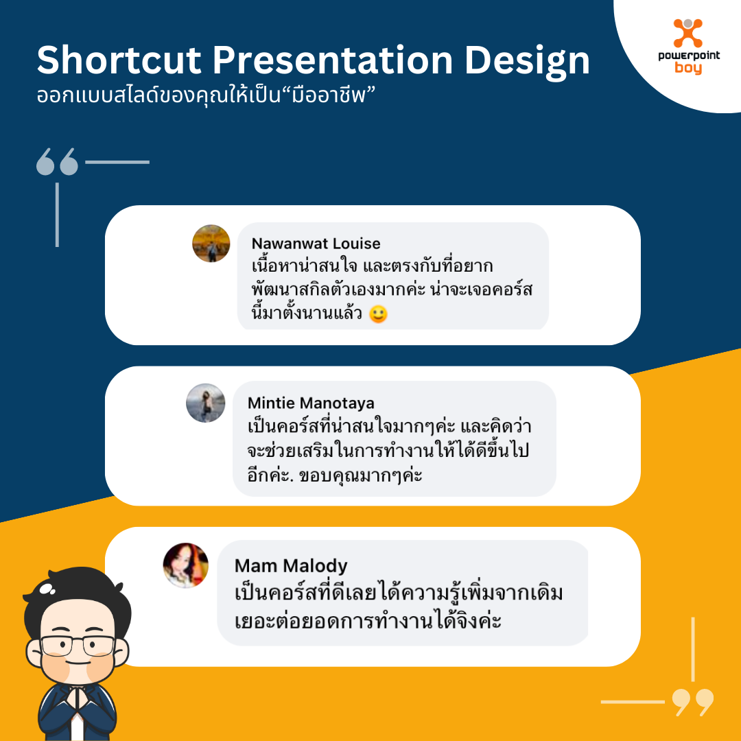 สมัครแล้วเริ่มเรียนได้ทันที Shortcut Presentation Design
